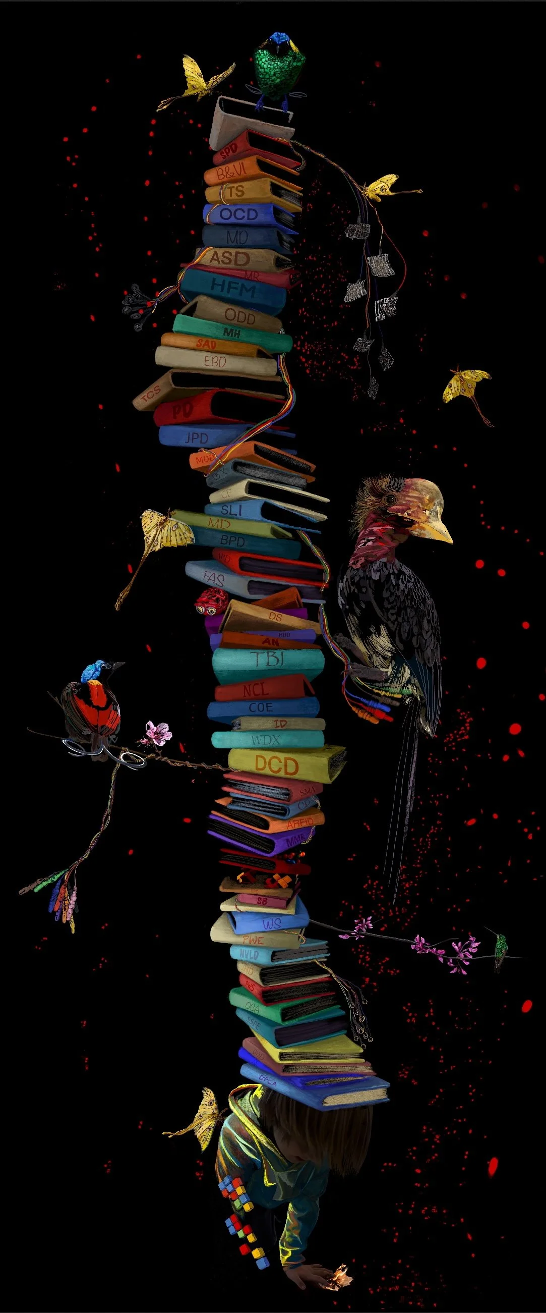 The Forest is an attempt to capture some of the absolute insanity a loved one can feel trying to lift up their child … trying to help them to soar. It is overwhelming. I think of the disability as a forest that I wonder within, A forest with few if any directions that often lead to nothing or nowhere only to get deeper into the maze. My daughter is at war with language, movement, comprehension, interactions and maybe a touch of reality. All the things I took for granted before she came into my life. The things that I never had to really think much about. I feel the weight crushing her no matter the hours or dollars I throw into the rabbit holes. I am forced to question nature, purposes, difference. Ability is a rainbow of colors and realities. Is one more valuable than the next? I question how we look in awe at animals that are wondrously different from one another yet don’t have that same reaction with humans. Do we? I suppose it comes down to fear of the unknown or the difficulty of dealing with disorder in all our attempts to create an orderly society.